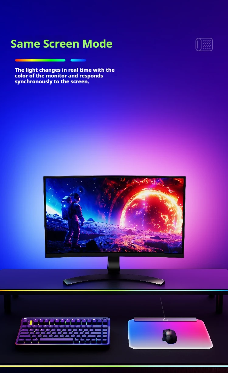 Sync with Screen Mode: This mousepad gaming is featured with 18pcs LED lights, being able to show 16 million color customization, our RGB mouse pads is designed to synchronize with the content displayed on you display via Skydimo App, the RGB LED light of gaming mousepad can change colors instantly according to the content such as games, movies, musics, creating an immersive experience.